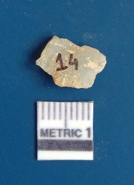 | Description / विवरण | It is chalcedony flake, translucent in appearance. The piece shows sharp pointed ends and flake scars on the surface as a result of flaking. The piece shows a bulb of percussion. |