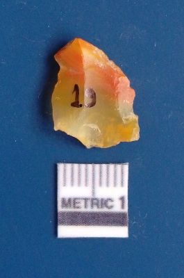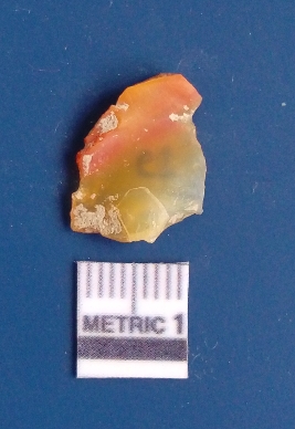 | Description / विवरण | It is chalcedony flake, translucent in appearance. The piece shows sharp pointed ends and flake scars on the surface as a result of flaking. The piece shows a bulb of percussion. |