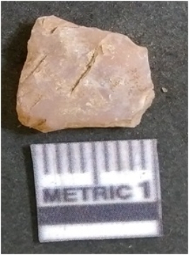 | Description / विवरण | It is chalcedony flake, translucent in appearance. The piece shows sharp pointed ends and flake scars on the surface as a result of flaking. The piece shows a bulb of percussion. |
