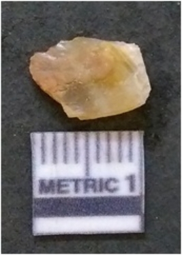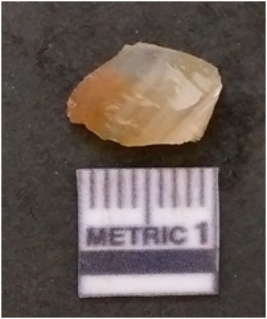 | Description / विवरण | It is chalcedony flake, translucent in appearance. The piece shows sharp pointed ends and flake scars on the surface as a result of flaking. The piece shows a bulb of percussion. |