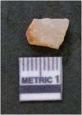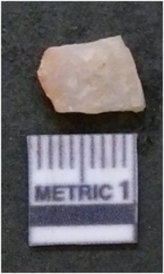 | Description / विवरण | It is chalcedony flake, translucent in appearance. The piece shows sharp pointed ends and flake scars on the surface as a result of flaking. The piece shows a bulb of percussion. |
