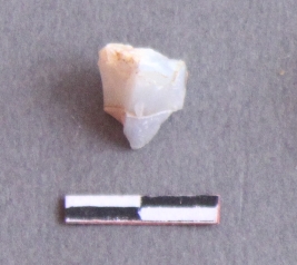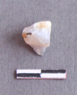 | Description / विवरण | It is a quartz fragment, with a striking platform, cortex on one end; there are many flake scars with ripples on it. |