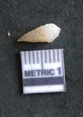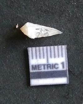 | Description / विवरण | The quartz piece has s harp pointed end and white coloration. The piece is a part of secondary flaking activity. |