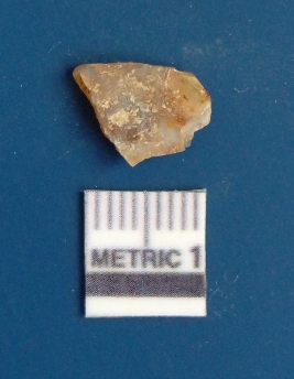| Description / विवरण | It is chalcedony flake, translucent in appearance. The piece shows sharp pointed ends and flake scars on the surface as a result of flaking. The piece shows a bulb of percussion. |