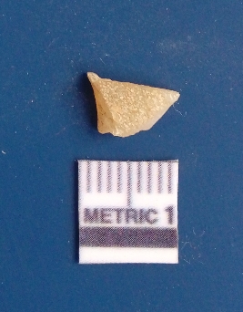 | Description / विवरण | It is chalcedony flake, translucent in appearance. The piece shows sharp pointed ends and flake scars on the surface as a result of flaking. The piece shows a bulb of percussion. |