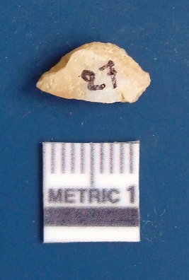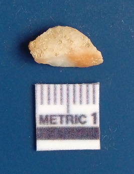 | Description / विवरण | It is chalcedony flake, translucent in appearance. The piece shows sharp pointed ends and flake scars on the surface as a result of flaking. The piece shows a bulb of percussion. |