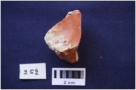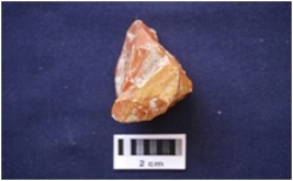 | Description / विवरण | Chert 1. Core with flake scars, prepared platform along one end. |
