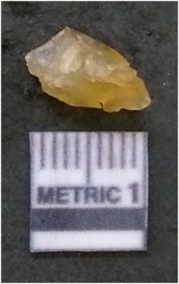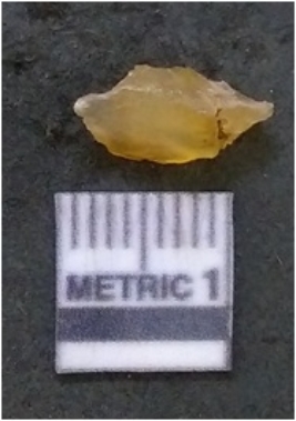 | Description / विवरण | It is chalcedony flake, translucent in appearance. The piece shows sharp pointed ends and flake scars on the surface as a result of flaking. The piece shows a bulb of percussion. |
