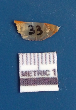 | Description / विवरण | It is chalcedony flake, translucent in appearance. The piece shows sharp pointed ends and flake scars on the surface as a result of flaking. The piece shows a bulb of percussion. |