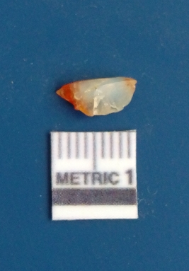 | Description / विवरण | It is chalcedony flake, translucent in appearance. The piece shows sharp pointed ends and flake scars on the surface as a result of flaking. The piece shows a bulb of percussion. |