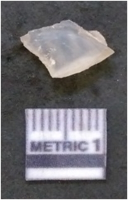 | Description / विवरण | It is chalcedony flake, translucent in appearance. The piece shows sharp pointed ends and flake scars on the surface as a result of flaking. The piece shows a bulb of percussion. |