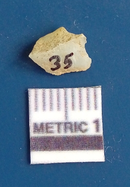 | Description / विवरण | It is chalcedony flake, translucent in appearance. The piece shows sharp pointed ends and flake scars on the surface as a result of flaking. The piece shows a bulb of percussion. |