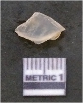 | Description / विवरण | It is chalcedony flake, translucent in appearance. The piece shows sharp pointed ends and flake scars on the surface as a result of flaking. The piece shows a bulb of percussion. |