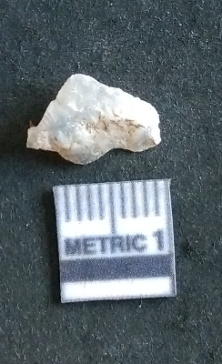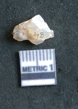 | Description / विवरण | The milky quartz piece is small, with sharp flaked edges and pointed ends as a result of flaking. |