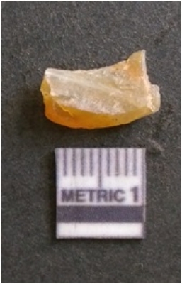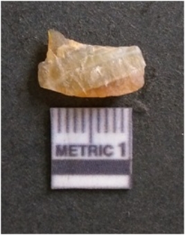 | Description / विवरण | It is chalcedony flake, translucent in appearance. The piece shows sharp pointed ends and flake scars on the surface as a result of flaking. The piece shows a bulb of percussion. |