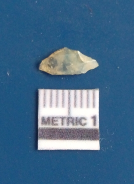 | Description / विवरण | It is chalcedony flake, translucent in appearance. The piece shows sharp pointed ends and flake scars on the surface as a result of flaking. The piece shows a bulb of percussion. |