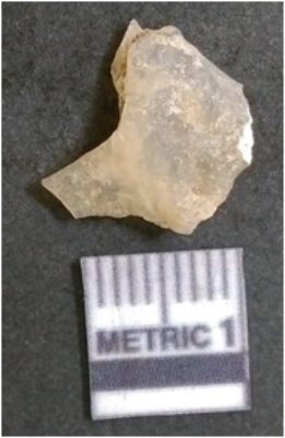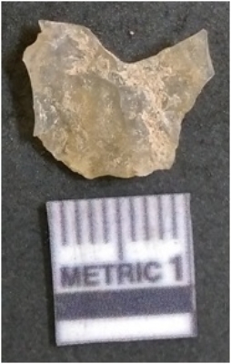 | Description / विवरण | It is chalcedony flake, translucent in appearance. The piece shows sharp pointed ends and flake scars on the surface as a result of flaking. The piece shows a bulb of percussion. |