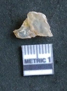 | Description / विवरण | The chalcedony flake is small, flat and has flake scars on the surface. The piece has sharp flaked edges as a result of lithic knapping. The piece is semi-transparent in appearance. |