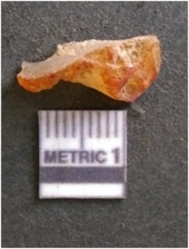 | Description / विवरण | It is chalcedony flake, translucent in appearance. The piece shows sharp pointed ends and flake scars on the surface as a result of flaking. The piece shows a bulb of percussion. |
