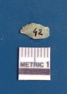 | Description / विवरण | It is chalcedony flake, translucent in appearance. The piece shows sharp pointed ends and flake scars on the surface as a result of flaking. The piece shows a bulb of percussion. |