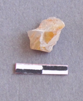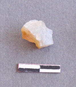 | Description / विवरण | It is a chalcedony fragment, with a striking platform, cortex on one end; there are many flake scars with ripples on it. |