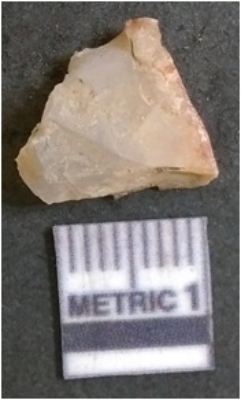| Description / विवरण | It is chalcedony flake, translucent in appearance. The piece shows sharp pointed ends and flake scars on the surface as a result of flaking. The piece shows a bulb of percussion. |