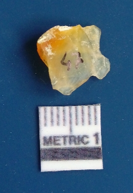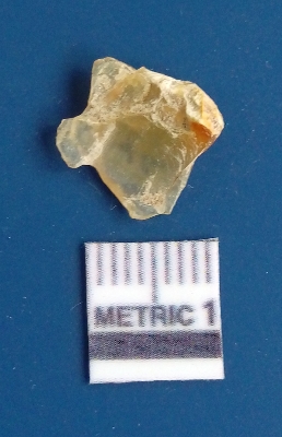 | Description / विवरण | It is chalcedony flake, translucent in appearance. The piece shows sharp pointed ends and flake scars on the surface as a result of flaking. The piece shows a bulb of percussion. |