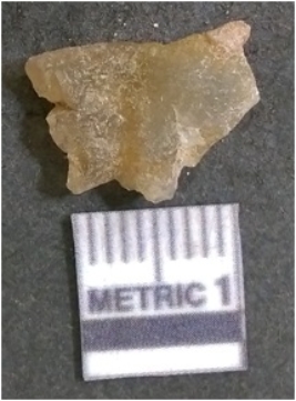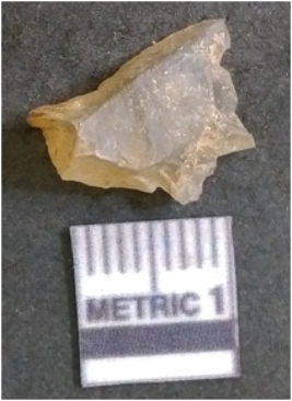 | Description / विवरण | It is chalcedony flake, translucent in appearance. The piece shows sharp pointed ends and flake scars on the surface as a result of flaking. The piece shows a bulb of percussion. |