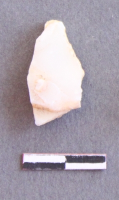 | Description / विवरण | It is a quartz piece with sharp edges and striking platform on the proximal end. Flakes scars on the surface with ripples on it. |