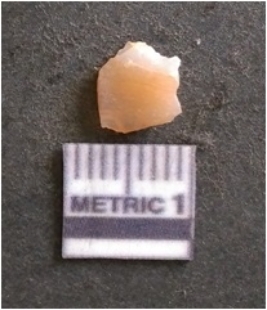 | Description / विवरण | It is chalcedony flake, translucent in appearance. The piece shows sharp pointed ends and flake scars on the surface as a result of flaking. The piece shows a bulb of percussion. |