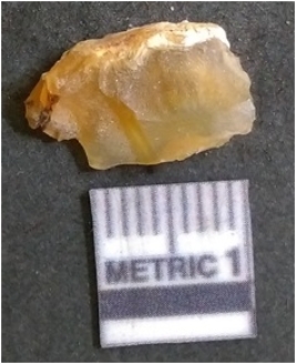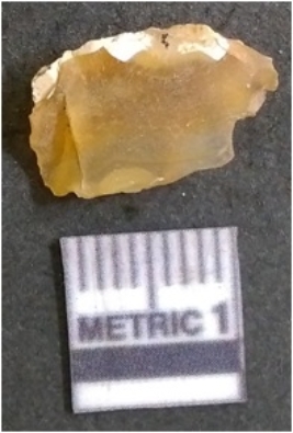 | Description / विवरण | It is chalcedony flake, translucent in appearance. The piece shows sharp pointed ends and flake scars on the surface as a result of flaking. The piece shows a bulb of percussion. |