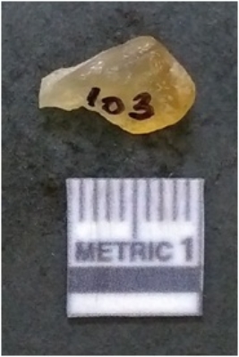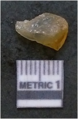 | Description / विवरण | It is chalcedony flake, translucent in appearance. The piece shows sharp pointed ends and flake scars on the surface as a result of flaking. The piece shows a bulb of percussion. |