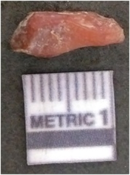 | Description / विवरण | It is carnelian flake red in color, with sharp flakes edges and a small bulb of percussion owing to knapping activity. The piece has sharp flaked edges and a crypto-crystalline matrix. |
