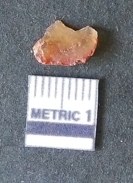 | Description / विवरण | The chalcedony piece is reddish in colour, with flaked edges and a prominenet bulb of percussion. The piece has a crypto-crystalline matrix and ecven fracture pattern. The piece is a part of secondary flaking process. |