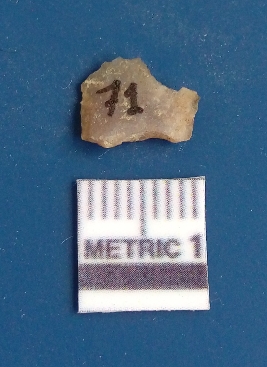 | Description / विवरण | The chert piece is dark in color, with a prominent bulb of percussion and sharp flaked edges. The piece is a part of lithic debitage or raw material for lithic knapping. The piece shows clear ripple marks and bulb of percussion. |