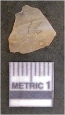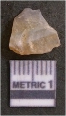 | Description / विवरण | The banded agate piece is crystalline in nature, with a smooth fracture pattern and visible bands on the flaked sides. The piece is pale in color and has sharp flaked ends. |