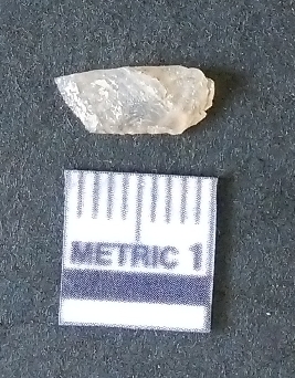 | Description / विवरण | The quartz piece is flat, with sharp flaked edges and a bulb of percussion. The piece has angular ends as a result of flaking and translucent appearance owing to crypto-crystalline matrix. |