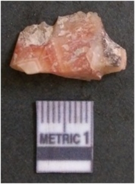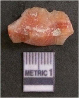 | Description / विवरण | The banded agate piece is crystalline in nature, with a smooth fracture pattern and visible bands on the flaked sides. The piece is pale in color and has sharp flaked ends. |