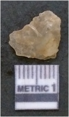 | Description / विवरण | It is chalcedony flake, translucent in appearance. The piece shows sharp pointed ends and flake scars on the surface as a result of flaking. The piece shows a bulb of percussion. |