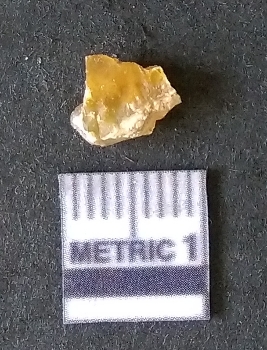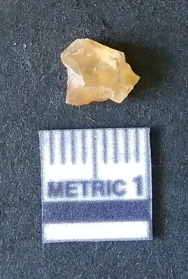 | Description / विवरण | The chalcedony piece is small, with yellowish coloration and flaked edges. The piece has rounded edges and has a prominent bulb of percussion as a result of flaking activity. |