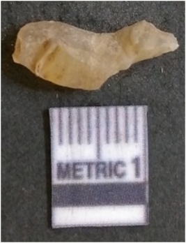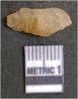 | Description / विवरण | It is chalcedony flake, translucent in appearance. The piece shows sharp pointed ends and flake scars on the surface as a result of flaking. The piece shows a bulb of percussion. |