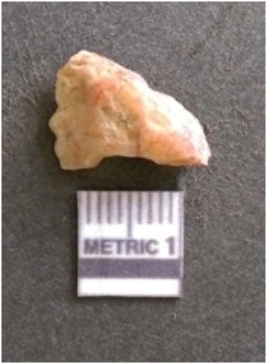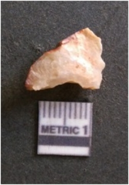 | Description / विवरण | It is chalcedony flake, translucent in appearance. The piece shows sharp pointed ends and flake scars on the surface as a result of flaking. The piece shows a bulb of percussion. |