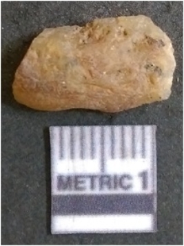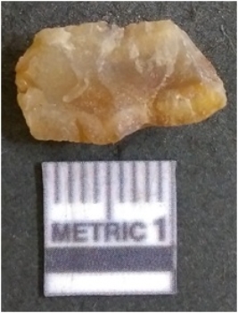 | Description / विवरण | It is chalcedony flake, translucent in appearance. The piece shows sharp pointed ends and flake scars on the surface as a result of flaking. The piece shows a bulb of percussion. |