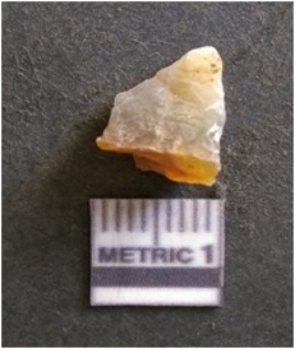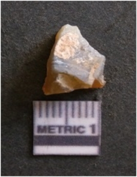 | Description / विवरण | It is chalcedony flake, translucent in appearance. The piece shows sharp pointed ends and flake scars on the surface as a result of flaking. The piece shows a bulb of percussion. |