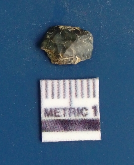 | Description / विवरण | The chert piece is dark in color, with a prominent bulb of percussion and sharp flaked edges. The piece is a part of lithic debitage or raw material for lithic knapping. The piece shows clear ripple marks and bulb of percussion. |