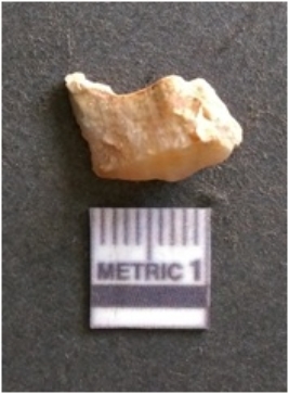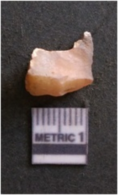 | Description / विवरण | It is chalcedony flake, translucent in appearance. The piece shows sharp pointed ends and flake scars on the surface as a result of flaking. The piece shows a bulb of percussion. |