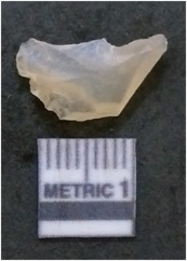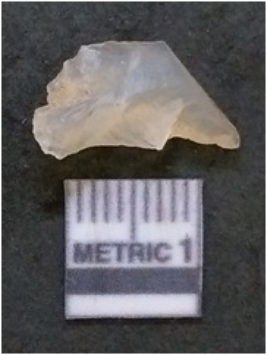 | Description / विवरण | It is chalcedony flake, translucent in appearance. The piece shows sharp pointed ends and flake scars on the surface as a result of flaking. The piece shows a bulb of percussion. |