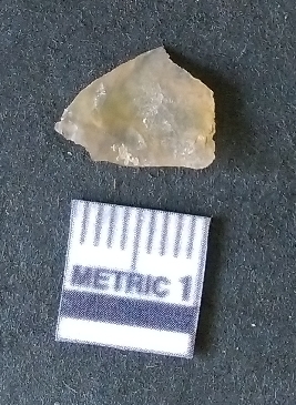 | Description / विवरण | The quartz flake is triangular in shape, with translucent appearance and uneven fracture pattern. The piece is pale white in colour with crypto-crystalline matrix. |
