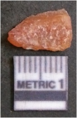 | Description / विवरण | It is chalcedony flake, translucent in appearance. The piece shows sharp pointed ends and flake scars on the surface as a result of flaking. The piece shows a bulb of percussion. |