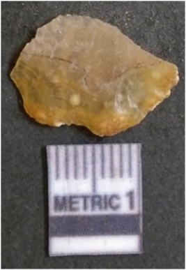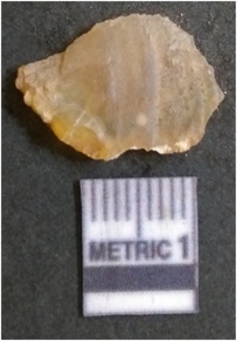| Description / विवरण | It is chalcedony flake, translucent in appearance. The piece shows sharp pointed ends and flake scars on the surface as a result of flaking. The piece shows a bulb of percussion. |